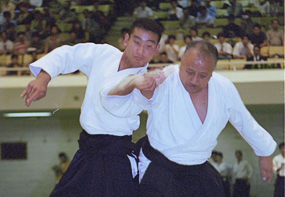 Todo o Budo é a mesma coisa. Inclusive, para quem faz Aikido, kihon é importante, sabe. Ao fazer o Kihon Waza durante cinco anos, dez ou vinte anos, sempre conseguimos perceber alguma novidade. E também, o segredo do Aikido, de suas técnicas, está englobado dentro do Kihon, por isso é preciso treiná-lo. Agora, Kaeshi Waza e Henka Waza, para quem treina Kihon, isso nasce naturalmente. Por isso, de uns anos para cá, comecei a forçar as pessoas a treinar o Kihon Waza. Eu não dou aula de Kihon, eu treino junto com as pessoas. Nesse momento, não penso que o outro é aluno, não penso que é meu discípulo ou adepto, penso que é meu colega e que meu corpo está movimentando junto, unificado com o dele.