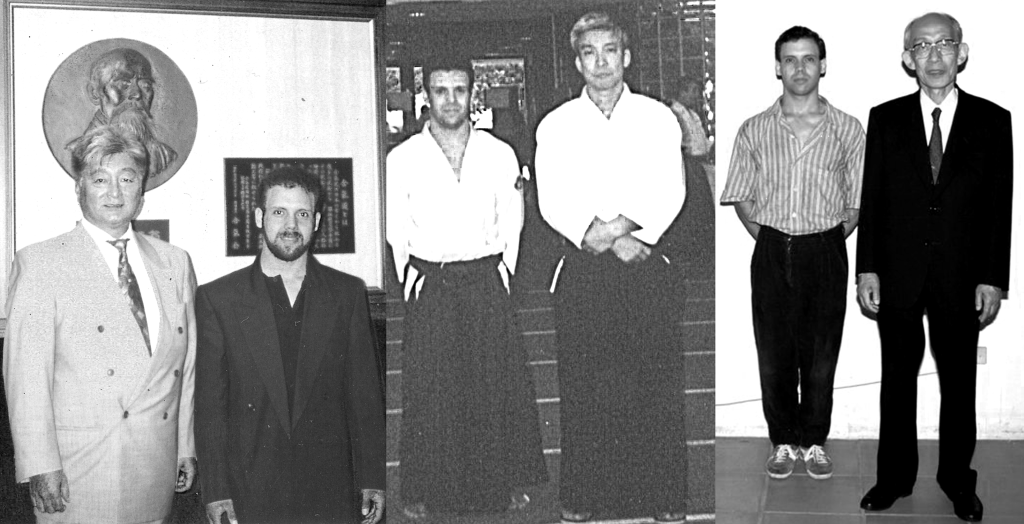 A primeira vez, em São Paulo, que se viu um vídeo de Ueshiba O-Sensei, foi por uma complexa ação “diplomática”, minha. Um faixa-preta do Rio de Janeiro estava em São Paulo e havia adquirido um vídeo de um documentário, mas também havia gravação de K. Tohei Sensei, que havia se separado recentemente da Aikikai e ele estava com muito receio de causar alguma polêmica. Tive que convencê-lo a emprestar, me comprometendo firmemente a passar apenas a primeira parte do vídeo, só com O-Sensei, além de conseguir uma TV e um (dos recém-chegados ao Brasil) aparelho Betamax, emprestado. Após um complexo e rápido arranjo, num yudanshakai (encontro de faixas-pretas) conseguimos ver, pela primeira vez, imagens em vídeo, de O-Sensei. Obviamente foi excitante, ainda que quase inócuo aos nossos olhares despreparados à época, mas foi um início de estudo. O vídeo, é claro, hoje está no youtube, inclusive o do Tohei sensei…Enfim, eu fazia tudo ao meu alcance para amadurecer minha formação e, muito além de meus entendimentos pessoais e intuitivos, aprender o mais autêntico da arte, por ela mesma, que eu pudesse, para transmitir com o mínimo de minha imensa ignorância.